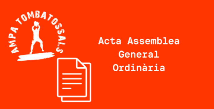 La Junta Directiva de l'AMPA CEIP Tombatossals convoca a totes les famílies sòcies de l'Associació a l'ASSEMBLEA GENERAL ORDINÀRIA per al 3 de desembre de 2023