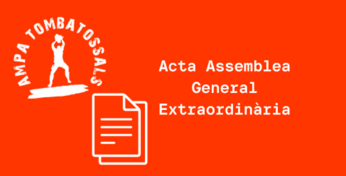 La Junta Directiva de l’AMPA CEIP Tombatossals convoca a totes les famílies sòcies de l’Associació a l’ASSEMBLEA GENERAL EXTRAORDINÀRIA (conforme a l’article 14 dels seus estatuts). Dia: 13 de juny de 2025Hora: Primera convocatòria: 17.30 h. Segona convocatòria: 18.30 h. (La previsió és començar en segona convocatòria)Lloc: Presencial en les instal·lacions del …