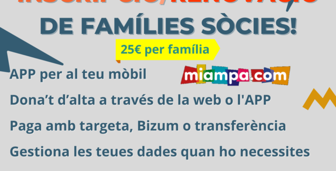Ja ha arribat el moment. Hem obert la inscripció com a famílies sòcies per al curs 23-24. Accedeix a aquesta entrada i esbrina com fer-ho
