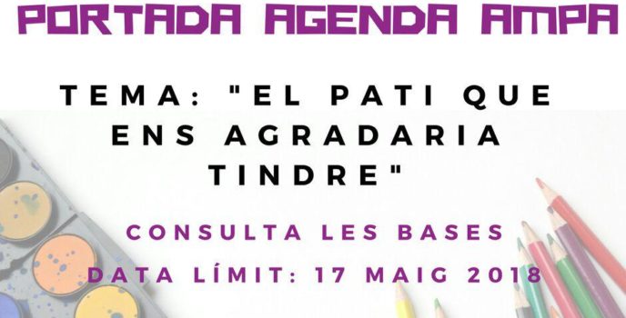 Primària: Concurs de dibuix per a la portada de l’agenda de l’AMPA del curs 2018-2019 Bases del concurs L’AMPA Tombatossals convoca un concurs per fer el dibuix de la portada de l’agenda de l’AMPA del proper curs. Podran participar tots els alumnes de primària del centre. Tema: “El pati que ens agradaria tindre” El dibuix …