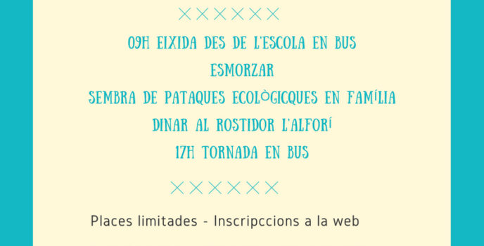 Passem un dia de festa a Vistabella amb altres famílies de l’escola! Anirem en autobus fins Vistabella per coneixer com es treballa la terra i s’obtenen els aliments que després menjarem tots junts al Rostidor L’Alforí, en plena natura. Descripció de l’activitat: Al Rostidor l’Alforí i Forestuber Cooperativa de desenvolupament rural apostem per productes de …