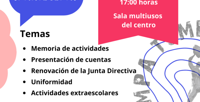 La Junta Directiva de la AFA CEIP Tombatossals convoca a todas las familias socias de la Asociación a la ASAMBLEA GENERAL ORDINARIA (conforme al artículo 14 de sus estatutos). Día: 17 d’octubre de 2025Hora: Primera convocatoria: 16.30 h.Segund convocatoria: 17.00 h.(La previsión es comenzar en segunda convocatoria) Lloc: Presencial en las instalaciones del colegio y …