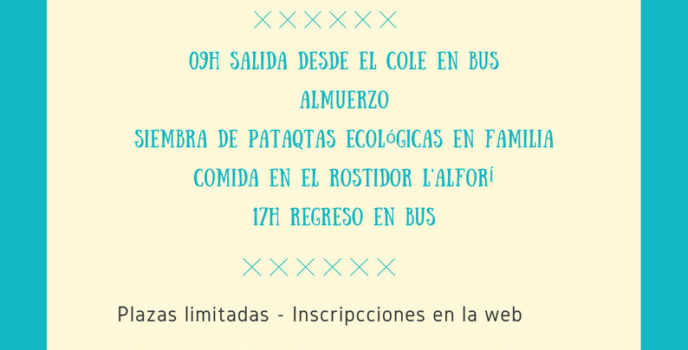 Pasemos un día de fiesta en Vistablella con otras familias de la escuela! Iremos en autobús hasta Vistabella para conocer como se trabaja la tierra y se obtienen los alimentos que después comeremos todos juntos en el Asador L’Alforí, en plena naturaleza. Descripción de la actividad: En el Asador l’Alforí y Forestuber Cooperativa de desarrollo …