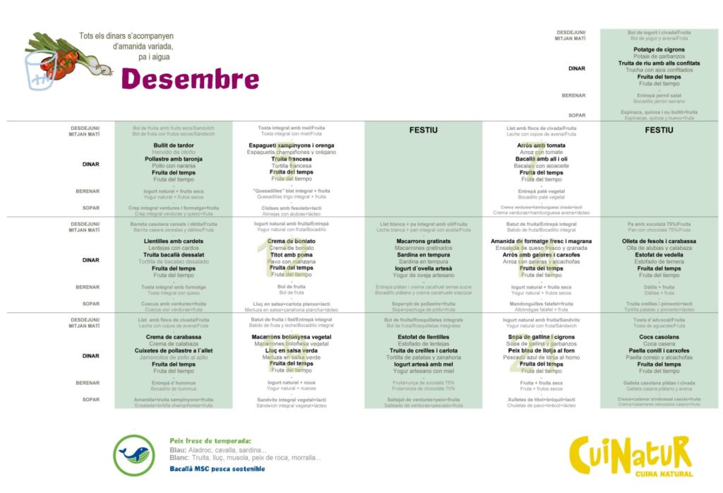Menú Menjador Desembre 2017