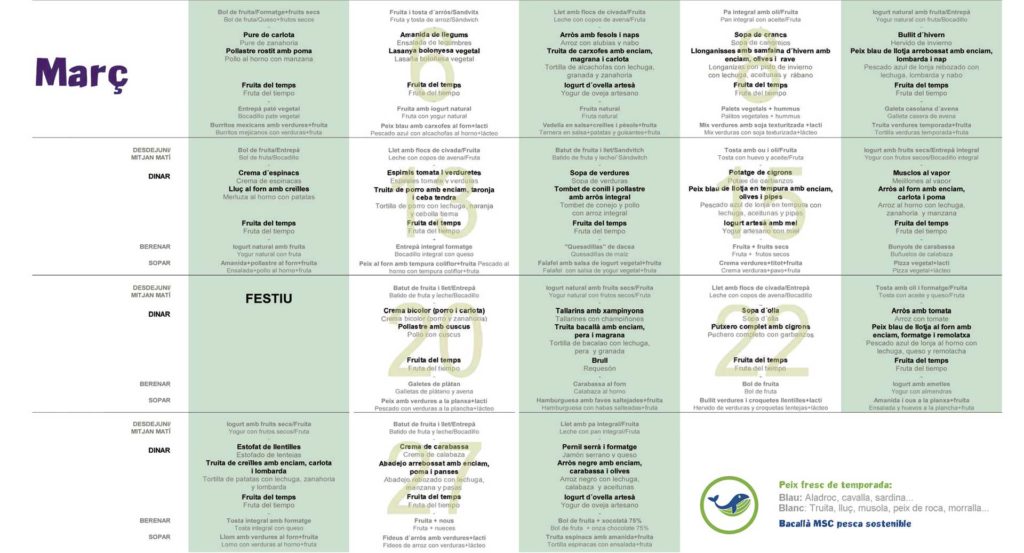 Menu Menjador Març 2018