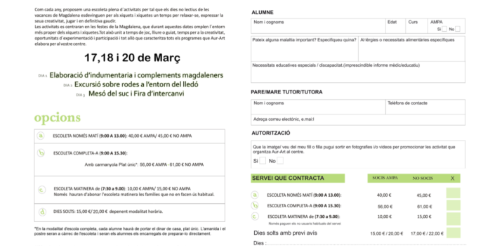 Us adjuntem informació de l’escoleta de Magdalena. Les inscripcions i consultes les podeu fer directamente a l’escoleta matinera o al mail globalarts.informacio@gmail.com
